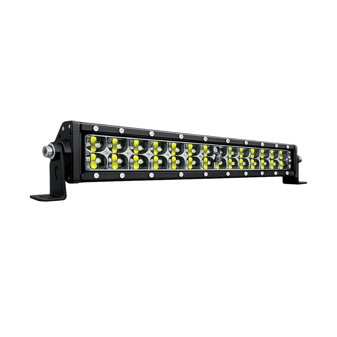 Barra LED compacta de 10 pulgadas y 72W, diseñada como iluminación auxiliar para vehículos off-road, maquinaria y aplicaciones profesionales. Incorpora lentes dobles 6D y configuración de doble fila, ofreciendo un haz combinado (spot + flood) que mejora la visibilidad tanto a larga distancia como en zonas cercanas.