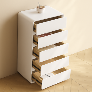 Sus cinco cajones amplios ofrecen una gran capacidad de almacenamiento, permitiendo organizar ropa, accesorios u objetos personales de forma práctica y eficiente.