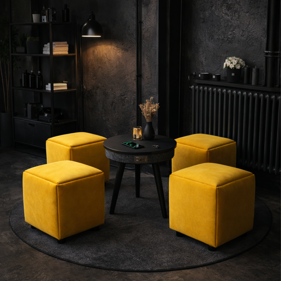 Conjunto de Mobiliario Moderno y Funcional: Taburete Multifuncional y Mesa Inteligente con Bluetooth