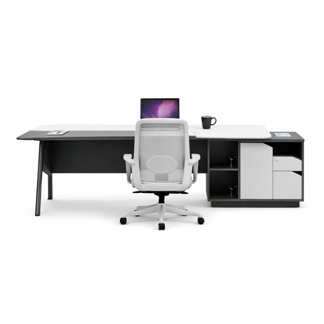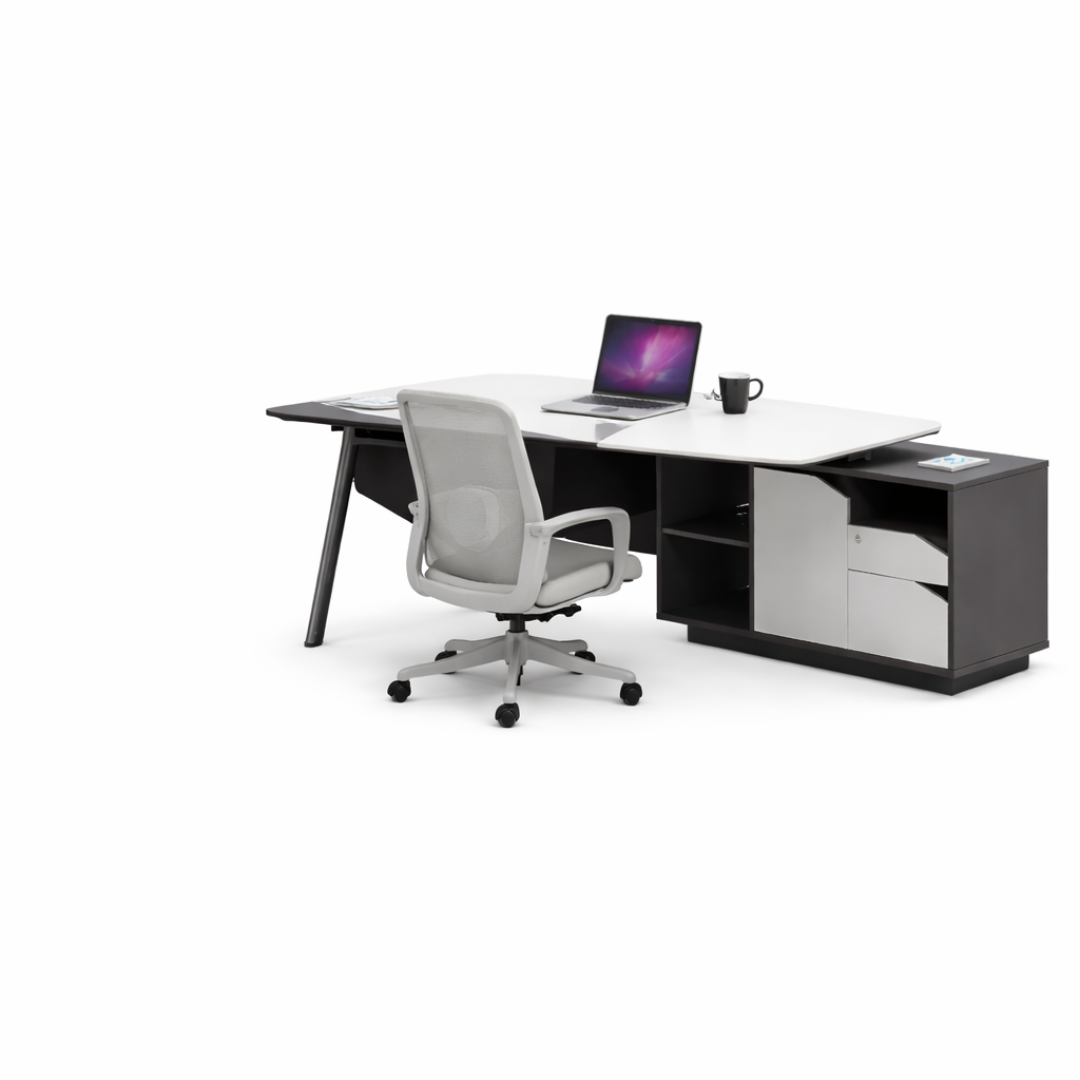 Este conjunto de oficina es la opción perfecta para quienes buscan un espacio de trabajo cómodo, eficiente y de diseño contemporáneo, combinando funcionalidad y confort en un solo conjunto.