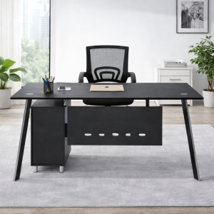 El conjunto de escritorio con superficie de vidrio y silla ergonómica es una opción completa para crear un espacio de trabajo moderno, cómodo y funcional. El escritorio, de líneas elegantes, incorpora un armario lateral fijo que facilita la organización, mientras que la silla ergonómica con respaldo de malla ofrece un soporte adecuado y confort durante largas jornadas. Una solución versátil, ideal tanto para oficina como para home office.