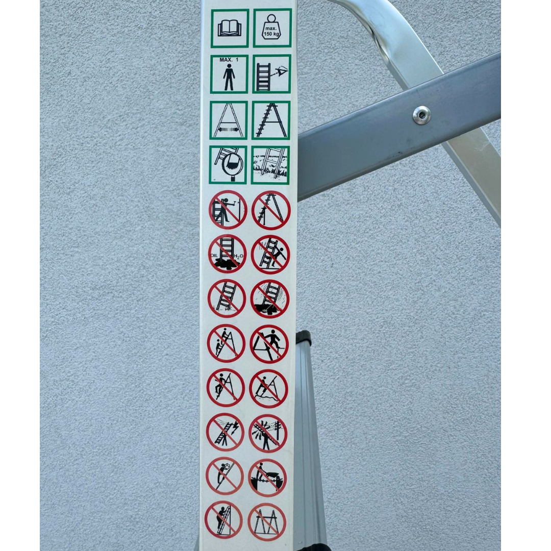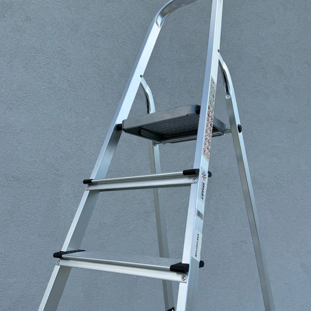 - Protección del Suelo: Patas con tapas de goma que evitan deslizamientos, protegiendo tanto la escalera como el suelo.