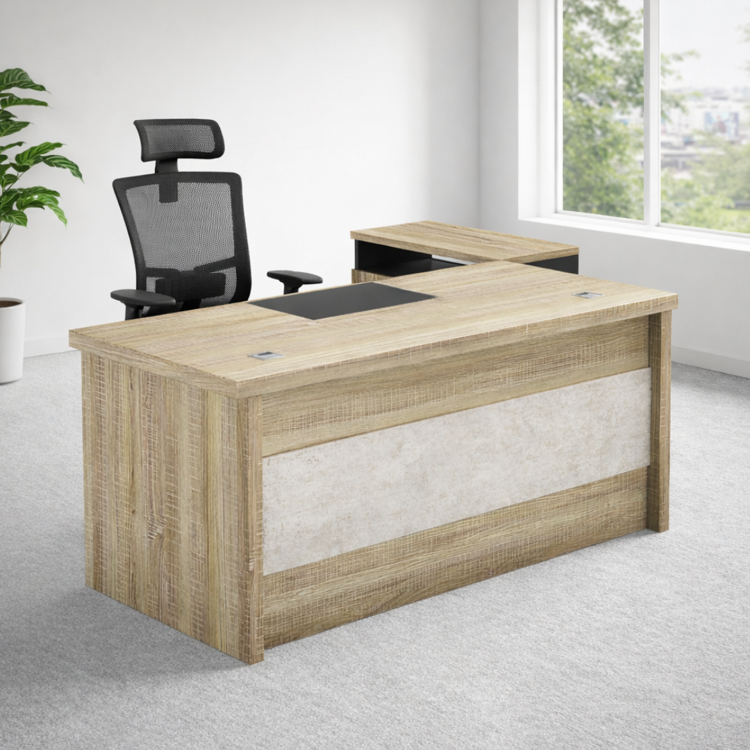 El escritorio ejecutivo SM-B03 es la solución perfecta para crear un espacio de trabajo moderno, organizado y eficiente. Diseñado para oficinas directivas, combina una amplia superficie de trabajo con almacenamiento adicional para mantener todo en orden.