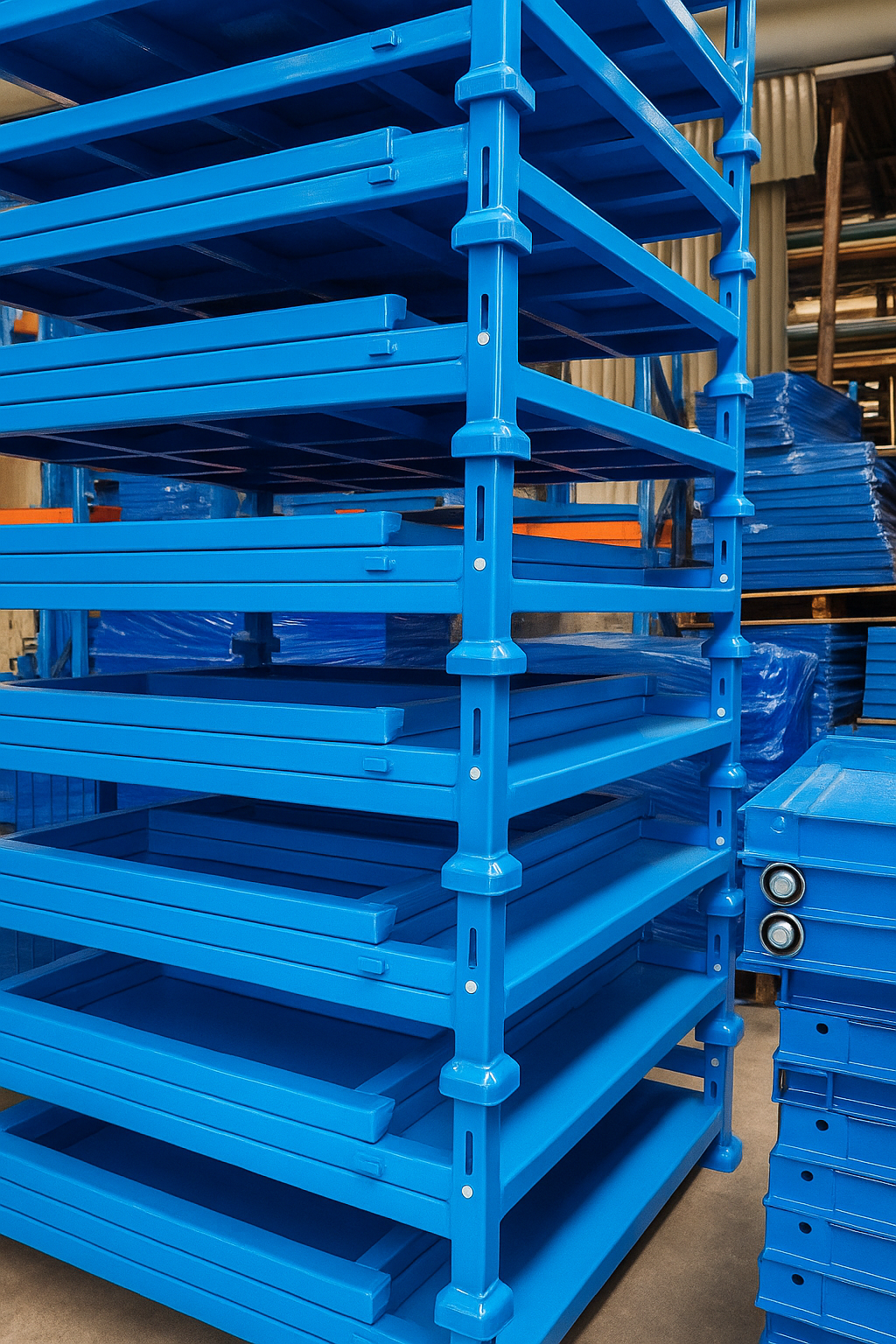 - Apilamiento seguro: Posibilidad de apilar hasta 3 o 4 unidades, optimizando el espacio vertical.