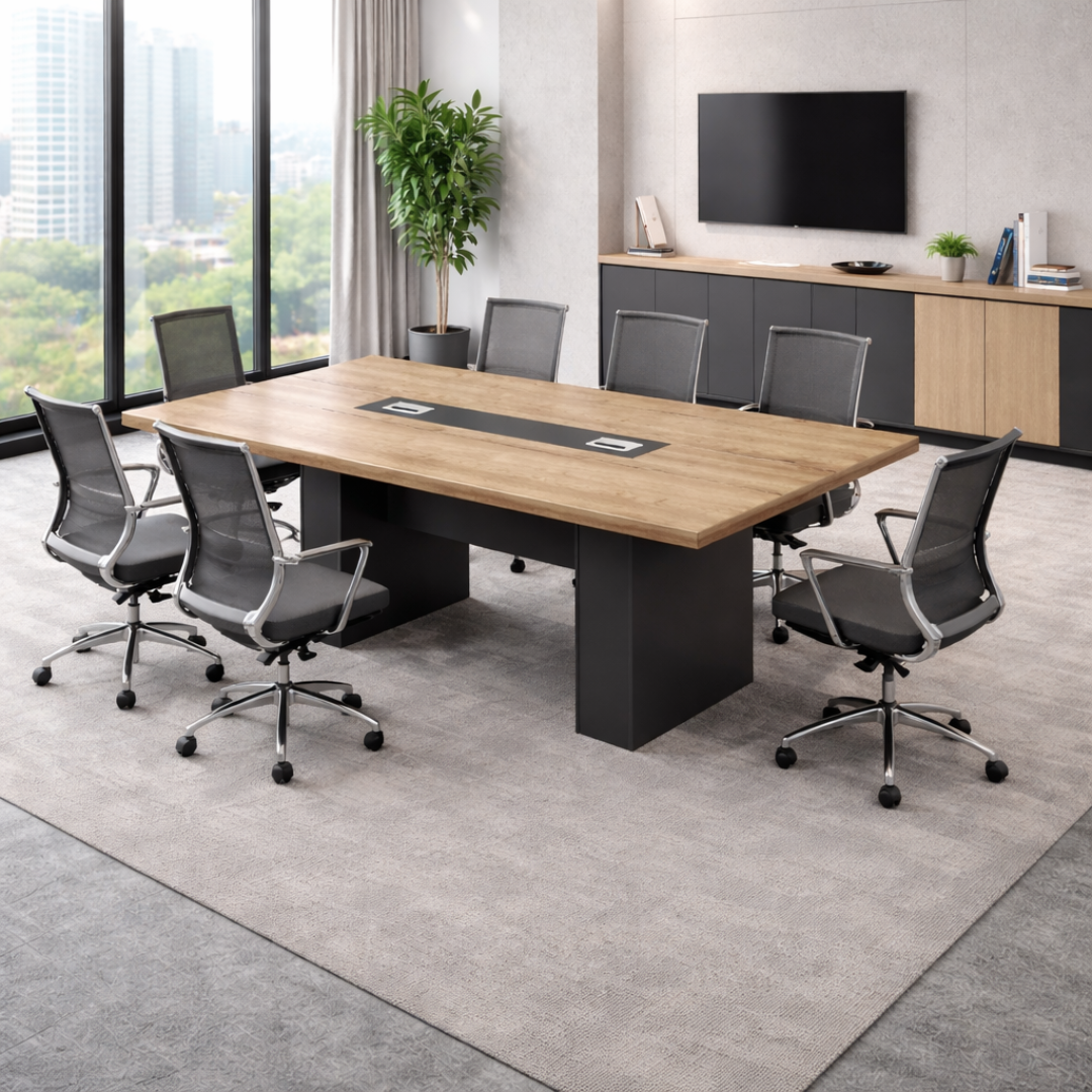 La mesa de conferencia 21-MM07 está diseñada para ofrecer máxima estabilidad, durabilidad y presencia estética en espacios de trabajo exigentes. Su combinación de acabado en madera natural y gris antracita aporta un estilo moderno y sofisticado, ideal para oficinas contemporáneas.