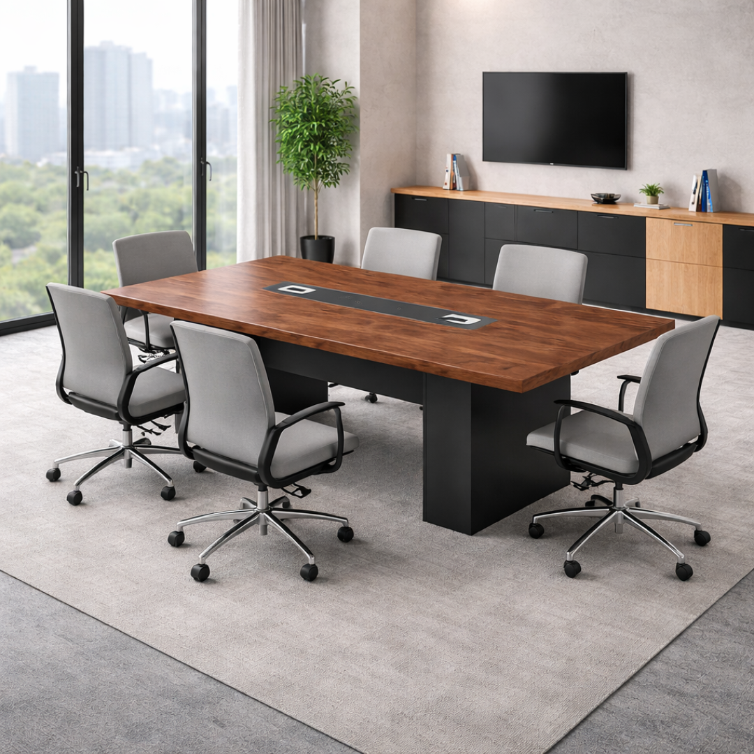 La mesa de conferencia 21-MM30 es la solución ideal para quienes buscan un mobiliario sólido, elegante y funcional que refuerce la imagen profesional de su oficina. Diseñada para eliminar problemas habituales como la inestabilidad o los diseños anticuados, ofrece una estructura robusta y un estilo moderno con líneas rectas.