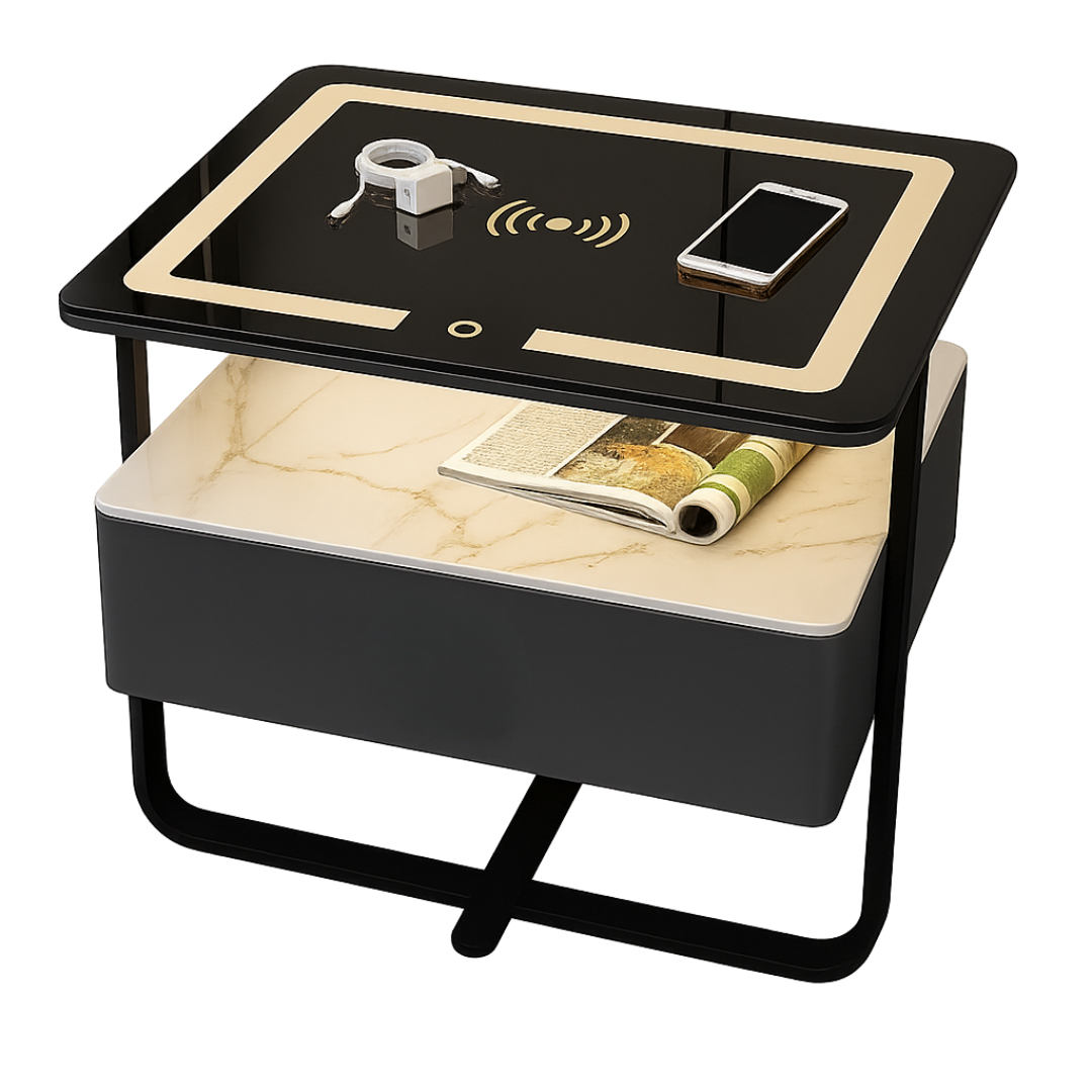Añade un toque de tecnología y elegancia a tu dormitorio con esta mesita de noche inteligente, diseñada para ofrecer comodidad, funcionalidad y un estilo contemporáneo.