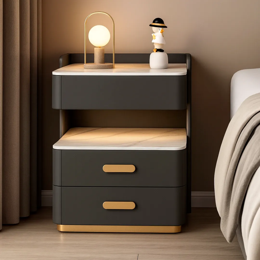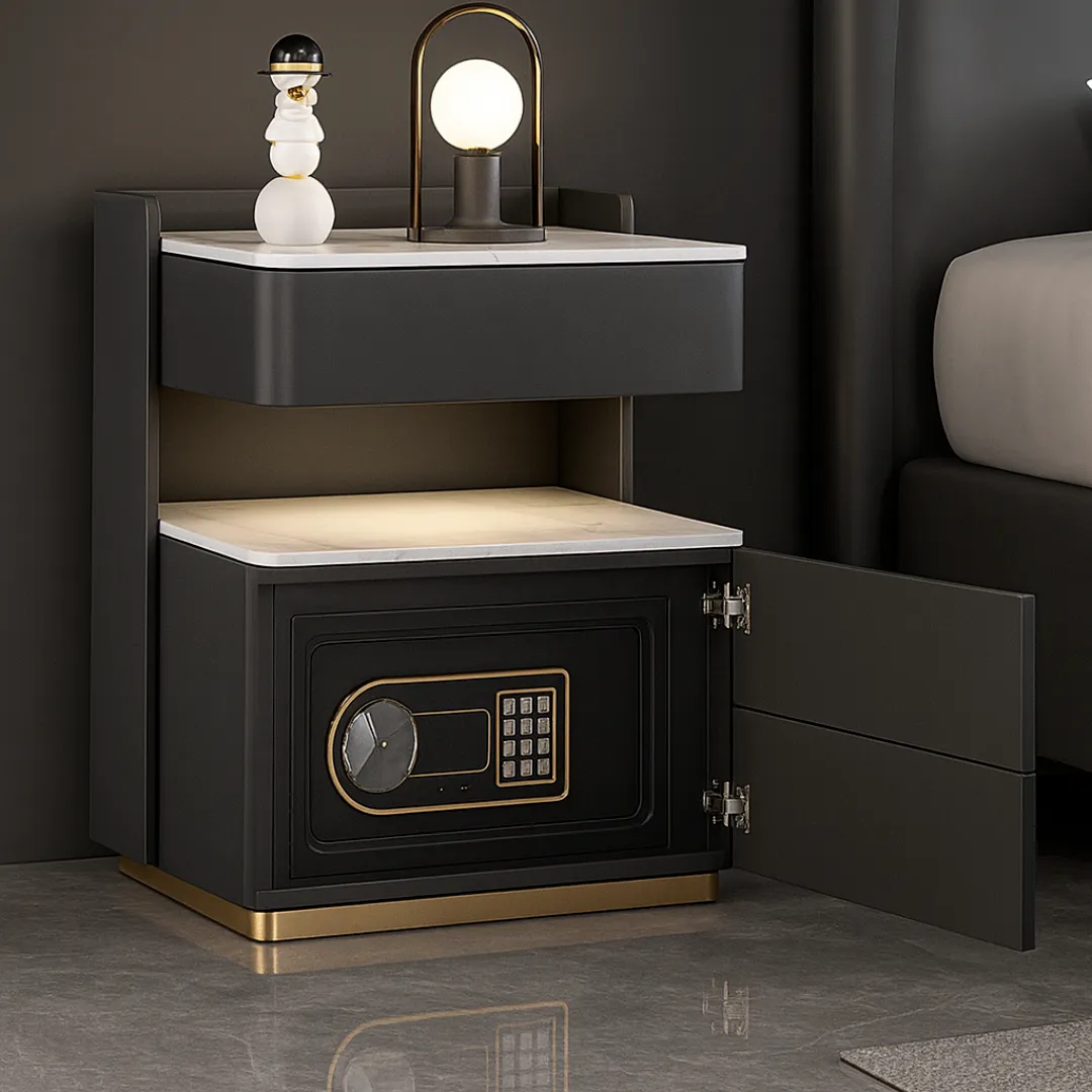 Esta mesita de noche inteligente gris antracita combina tecnología, seguridad y diseño, convirtiéndose en el complemento perfecto para cualquier dormitorio moderno.