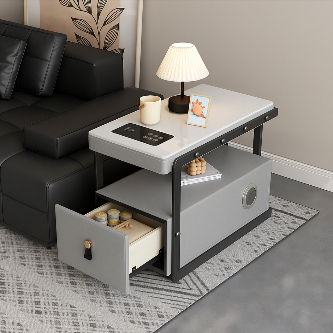 Transforma tu dormitorio en un espacio moderno, funcional y elegante con esta mesita de noche inteligente, diseñada para combinar tecnología y diseño en un solo mueble.