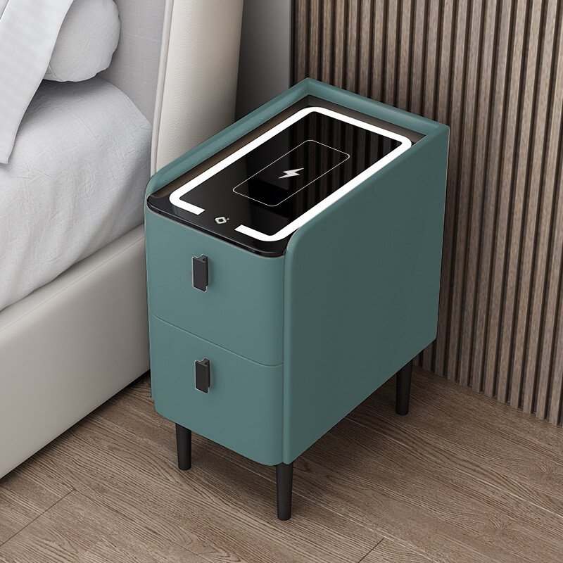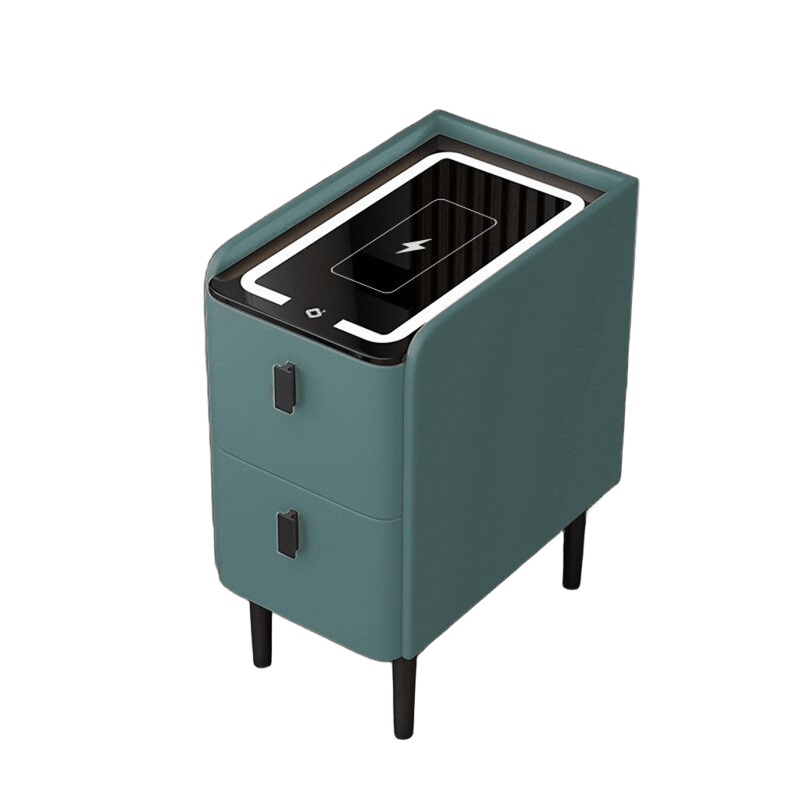 Crea un ambiente moderno con esta mesita de noche inteligente slim verde, que combina tecnología y estilo de manera única.