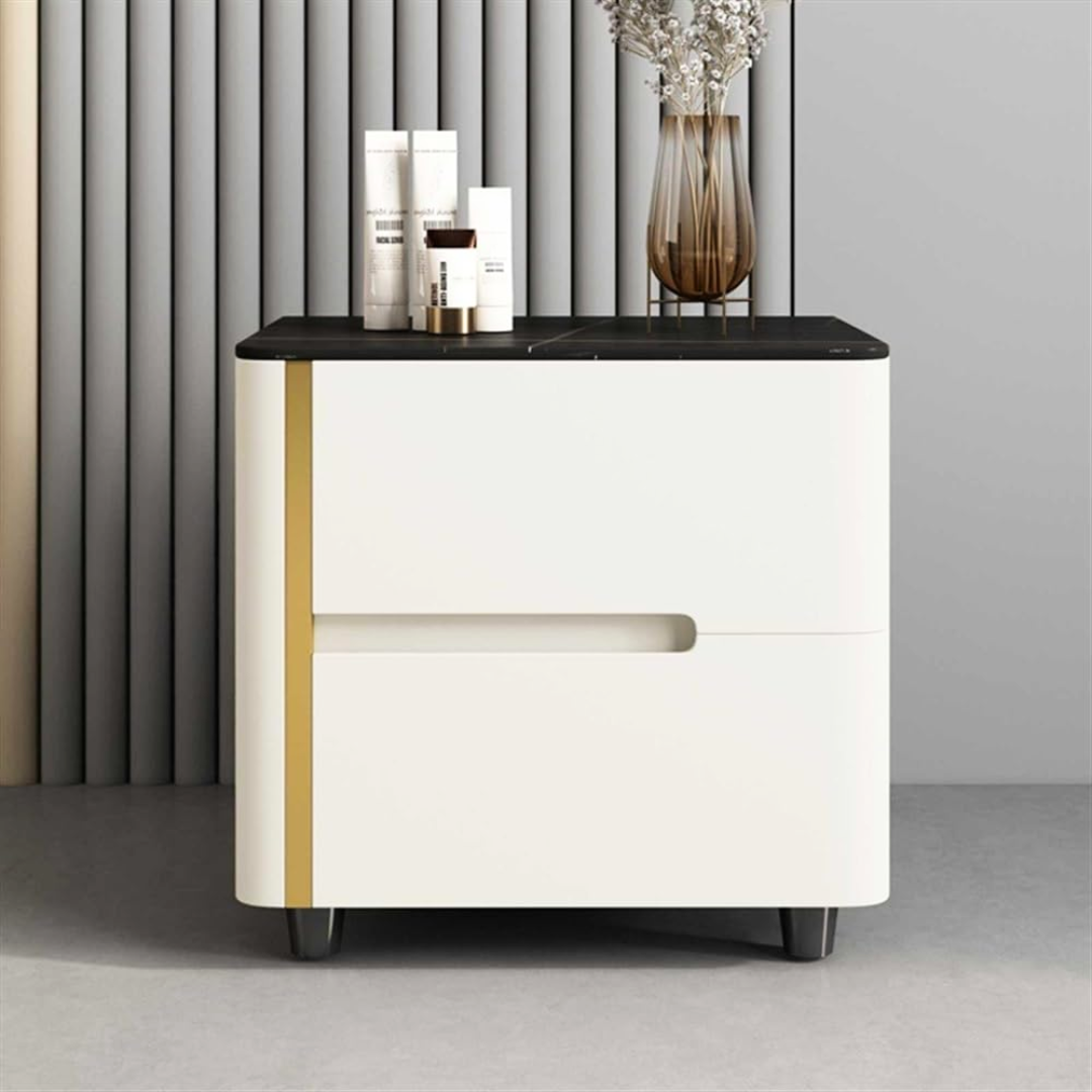 Mesita de noche pintada de piedra sinterizada madera de roble y metal – BLANCA