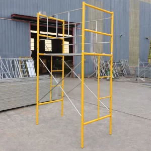 Este marco superior para andamio está compuesto por dos marcos tipo H de 1000 mm de altura y dos marcos laterales de unión y protección. Está diseñado para su instalación en el nivel superior del andamio, creando una zona de trabajo segura y bien delimitada.