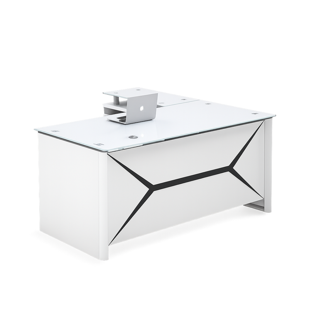 A diferencia de los escritorios convencionales, este modelo destaca por su acabado premium en vidrio templado y su sólida estructura metálica, aportando un estilo contemporáneo y una gran durabilidad.