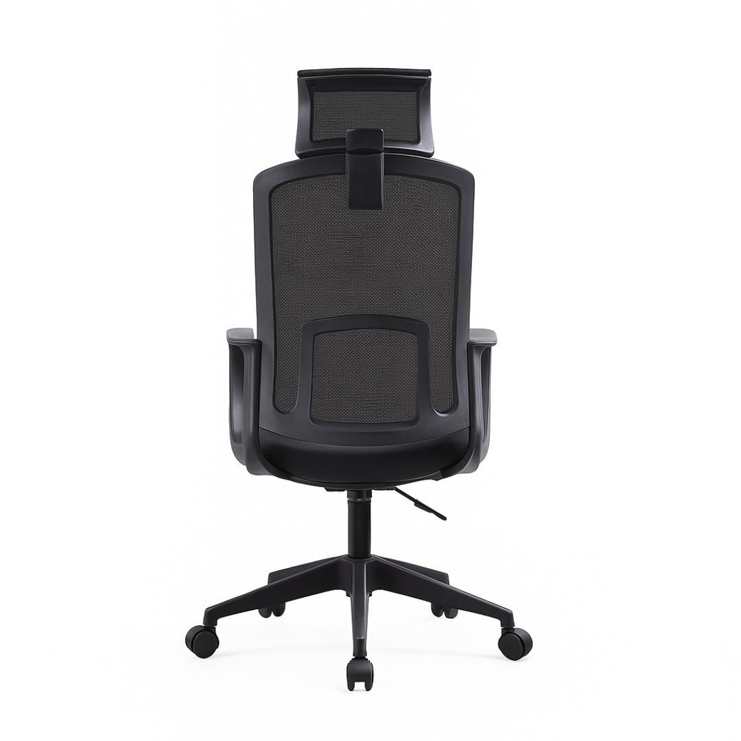 El reposacabezas ajustable en altura 2D, fabricado con malla transpirable y fibra de vidrio PA, asegura una ventilación óptima mientras proporciona una gran durabilidad. El respaldo de malla y PP negro reforzado con fibra de vidrio ofrece un excelente soporte lumbar, promoviendo una postura saludable durante todo el día. El asiento, compuesto por espuma moldeada de alta densidad, está recubierto con un material resistente, garantizando una comodidad prolongada.