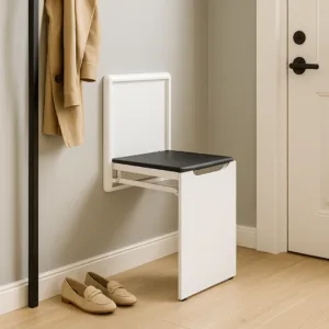 La silla plegable de pared para calzado es una solución moderna y práctica para ahorrar espacio en tu hogar. Fabricada con aleación de aluminio y acero de alta calidad, este taburete ofrece resistencia, durabilidad y estabilidad a largo plazo.